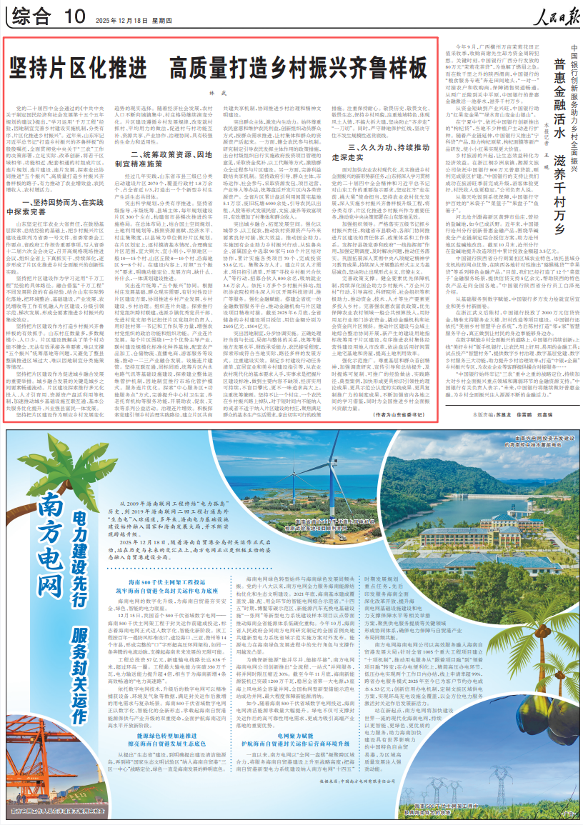 12月18日出版的《人民日报》在第10版刊登了山东省委书记林武署名的文章《坚持区域化,打造乡村振兴高质量齐鲁典范》。以下为全文: 坚持区域化,打造乡村振兴优质齐鲁典范。林武在中共二十届中央四次全会通过的《中共中央关于制定国民经济和社会发展第十五个五年规划的建议》中提出,“学习运用‘千万工程’经验,完善乡村振兴实施机制,完善乡村振兴实施机制。”近年来,山东认真贯彻习近平总书记关于“打造乡村振兴齐鲁典范”的殷切嘱托,全面落实党中央关于“三农”的决策部署,连村成片,连规划、连建设、连发展,探索出一条共同推进“五个复兴”的路径,打造乡村振兴高质量齐鲁模式,有力促进了农业增效、农民增收、乡村活力增强。 一、坚持适应形势,在实践中探索改进。在鼓励基层探索、总结经验的基础上,乡村振兴片区建设被列为省委一号文件、省委常委会的工作重点、省政府工作报告的重要事项。写入省委十二届六次全会决定。召开高规格现场推进会,组织全省上下奋力拼搏,不断深化,逐步形成了推动各地区乡村全面振兴的创新实践。把建设工地作为学习运用“百千万工程”经验的具体路径。整合借鉴“千万工程”不同发展阶段的有益经验,结合山东实际创新实施,将环境改善、基础设施建设、产业发展、农民增收等区域建设活动有机结合起来,分级引领示范、分层发展,形成推动乡村振兴的全要素综合效应。跟踪片区建设,切实有效以此为起点,打造齐鲁乡村振兴样板。山东省村庄数量众多,但大多面积较小、人口较少。片区建设不仅解决了个别村庄功能不全、各项要素无法有效落地、难以支撑“五复兴”总体规划实施的问题,而且避免了整个县镇推广区域面积过大、因地制宜实施分类政策困难的情况。把片区建设作为推动城乡一体化发展的重要举措。城乡一体化发展的关键是要素在城乡之间的顺畅流动。片区建设研究落实多元化投资、引进使用人才、利用资源产权等机制,加快推进城乡基础设施衔接、基本公共服务优化完善、产业融合发展、强县富民。把区域建设作为顺应乡村发展变化趋势的现实选择。随着经济社会的发展,农村人口继续向城镇集中,村庄格局不断发生变化和分化。片区建设遵循乡村发展规律,改变各村集中、齐头并进的做法,促进村与村之间角色互补、资源共享、产业合作、管理协调,具有强大的生命力和实用性。 2.统筹政策资源,因地制宜精准施策。经过几年的培育,山东省在城市实际启动了2070个工地市、县两级,覆盖18000多个行政村,占全省近三分之一,打造新型农村生态生产生活社区。突出科学规划、及早分类、有序推进。按照省级指导、市级统筹、县级实体的方式,每年规划建设300个左右名额,形成省、市、县三级实施推广的格局。总体布局上,结合国土空间规划、土地利用规划等,以县域为基础,根据资源禀赋、经济水平、村庄整合等情况进行区域规划。在区域划定上,应以了解每个村的基本情况为基础,合理确定区域范围。它应该尽可能大和尽可能小。一般平原地区有10-15个村庄,8-丘陵地区10个村,沿海地区5-8个村。在建设内容上,要对照“五个复兴”的要求,明确功能定位、发展方向、还缺什么、要做什么,统筹谋划、推进建设。强调“五个更新”的持续协调和协调。立足村庄发展基础和群众实际需求,有针对性地设计片区建设规划,统筹推进乡村产业、乡村建设、乡村管理发展。共同组织、共同建设。探索推进村际村党共建,选拔优秀镇党员干部和先进村党支部书记担任辖区党组织领导,充分发挥第一村书记和工作班子等力量,提高政治素质和队伍素质。农村党组织的组织职能。该行业不断发展。每个片区聚焦1-2个优势主导产业,共同建设村级大型标准化种植养殖基地,配套农产品加工、仓储物流、直播电商、旅游服务等设施,促进一二三产业融合发展。这些设施是并行建设和管理的。坚持连贯、标准并重、同质化,统筹片区水、电、气等基础设施建设,探索建立运行维护管理通用机制,因地制宜实行市场化管理维护模式。服务连接优化。探索“中心服务区+功能服务点”战略,完善提升中心服务功能l 村卫生室、养老机构等,开展帮农、促农、支农等一系列公益活动。管理持续有效。积极探索党建带头乡村管理的实践路径,建立全区共商共建共享机制,共同推进乡村管理和精神文明建设。突出主体质量,激发内生动力。始终尊重农民意愿,保障农民利益,有办法组织动员群众,从群众需求出发,盘活集体村和群众的资源财产。一方面,完善农民参与机制。研究制定引导农民发挥主体作用的政策措施,出台村级组织实行自我管理的意见不在政府投资项目中,采取财政奖励补贴、以工代赈等方式,鼓励群众参与全区建设过程。另一方面,完善利益联动和共享机制。按照政府引导、群众主体、市场运作、社会参与的原则,采取资源承包、项目运营、产业引进等措施,统筹盘活开发区各类资源资产。全省各地累计盘活闲置住宅用地5.1万个、废弃水塘6000多个,引导农民通过租赁、参股等方式发展民宿、文化旅游、医疗卫生等项目,有效增加了村民数量。集体和大众收入。突出城乡一体化,拓展发展空间。加强利用城市带动农村、产业带动农业,促进农村资源资产与外部要素良性对接,强化效益。加大国